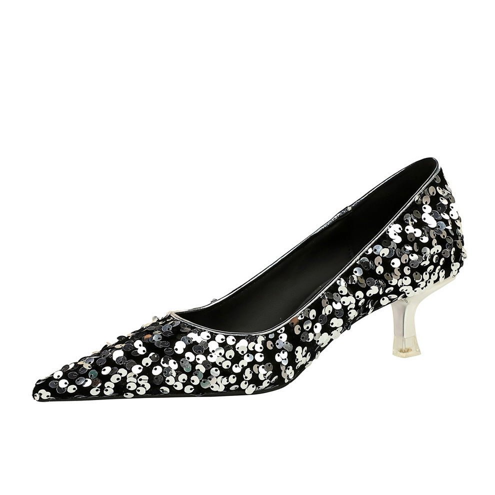 Bigtree shoes 237-21 Korean style new fashion temperament banquet sparkle sequins women’s shoes mid-heel low-cut pointed shiny crystal pumps