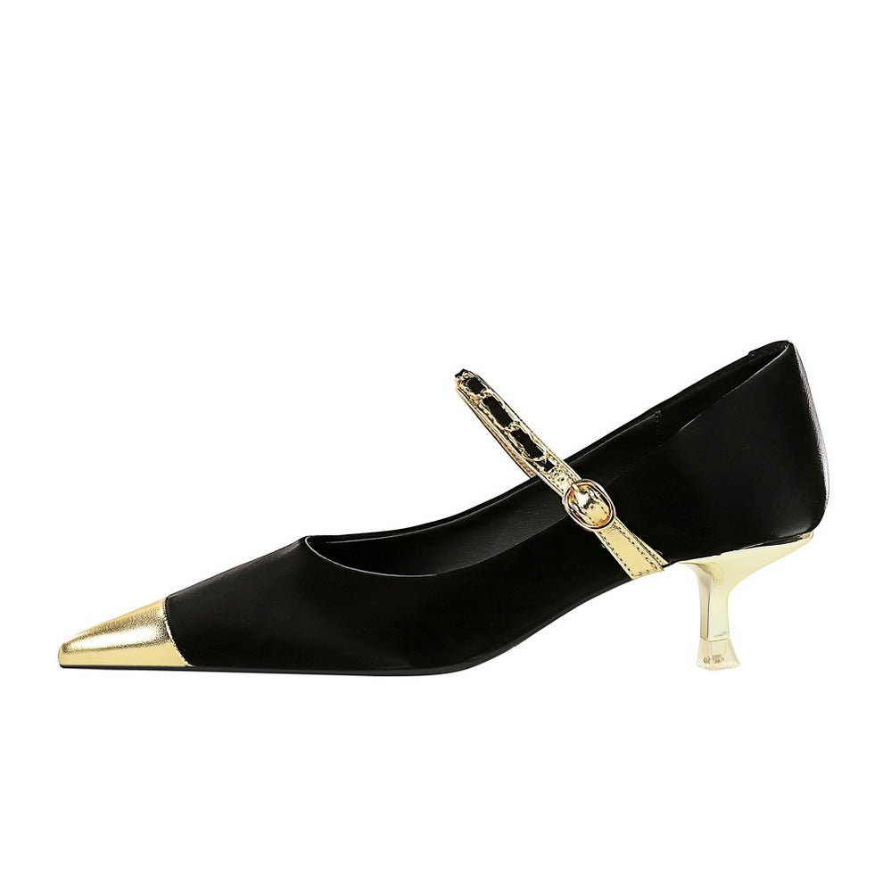 BIGTREE SHOES 237-25 Korean Style Fashionable Elegant Light Luxury Banquet Women’s Shoes Mid-Very Low-Cut Pointed-Toe Metal Chain Ankle-Strap Shoes