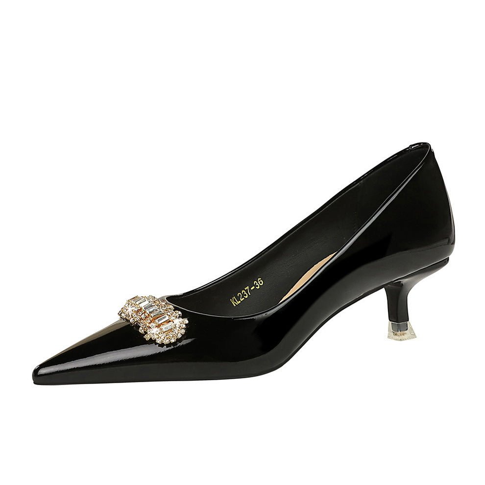 BIGTREE SHOES 237-K31 European and American Style Banquet Women’s Shoes Stiletto Mid-Heel Patent Leather Low-Cut Pointed Toe Rhinestone Metal Decoration Pumps Female