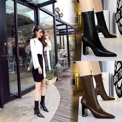 Bigtree Shoes 319-12 European and American Style Fashion Banquet Women’s Boots Short Tube Stiletto Heel Metal Pointed Toe Pedicure Slimming Suede Short Boots