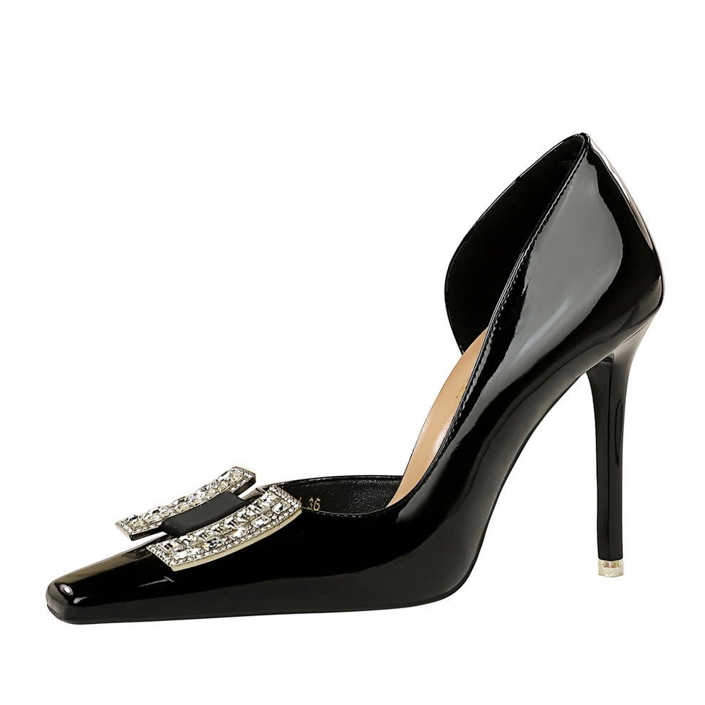 BIGTREE SHOES 3287-K70 European and American Banquet High Heels Stiletto Heel Shallow Mouth Square Toe Patent Leather Metal Rhinestone Buckle Pumps