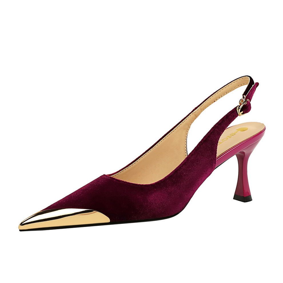 BIGTREE SHOES 3716-6 European and American Fashion Banquet Women’s Shoes Wine Glass Heel High Heel Suede Metal Pointed-Toe Hollowed Back Strap Women’s Shoes