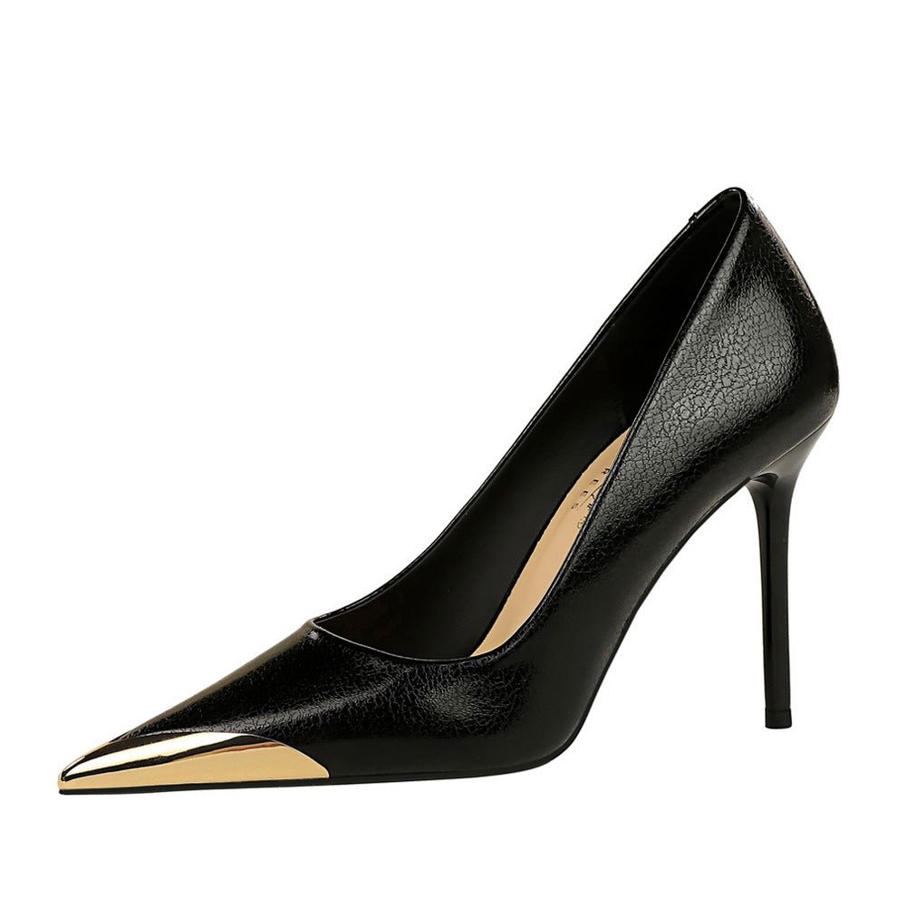 BIGTREE SHOES 3739-9 Retro European American Style Banquet High Heels Stiletto Women’s Shoes Super High Heel Shallow Mouth Pointed-Toe Metal Pointed Toe Pumps