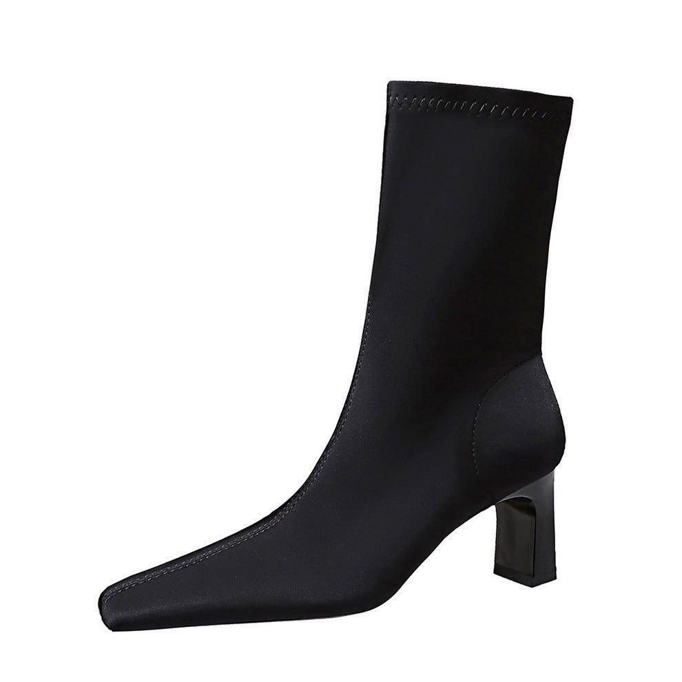 BIGTREE SHOES 375-1 European and American Fashion Minimalist High Heel Chunky Heel Square Toe Stretch Lycra Sex Pedicure Thin All-Match Short Booties