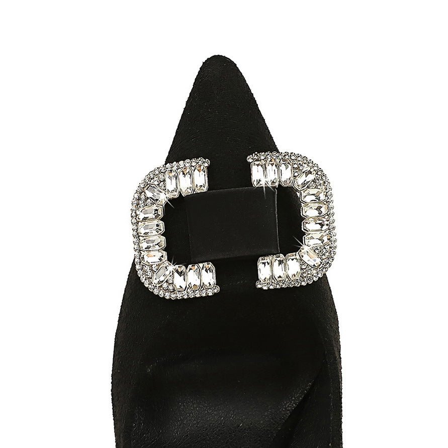 Popular Elements: European and American Style Fashionable Banquet High Heels Shining Rhinestone Buckle Light Luxury Women’s Shoes
