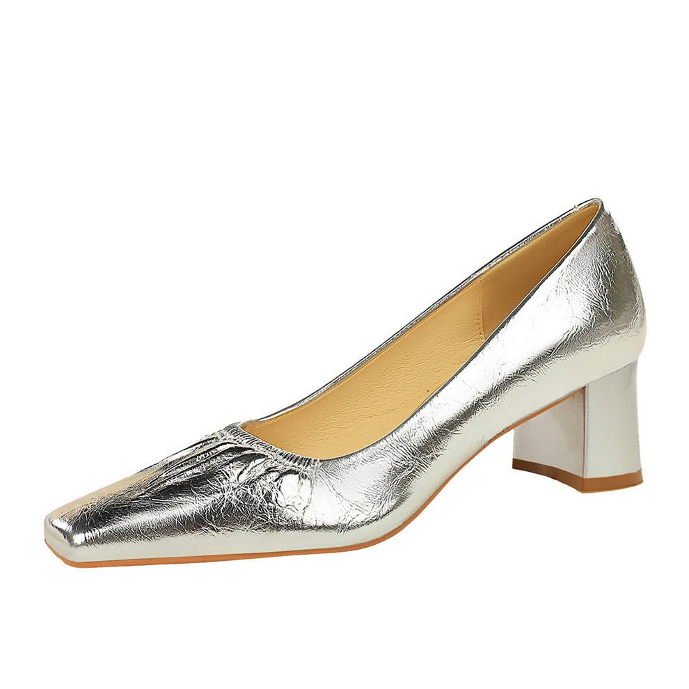 Popular Elements:Retro European and American Style Fashionable Pleated Shoes Mouth Shallow Mouth Square Head Spring and Autumn Commuter All-Matching