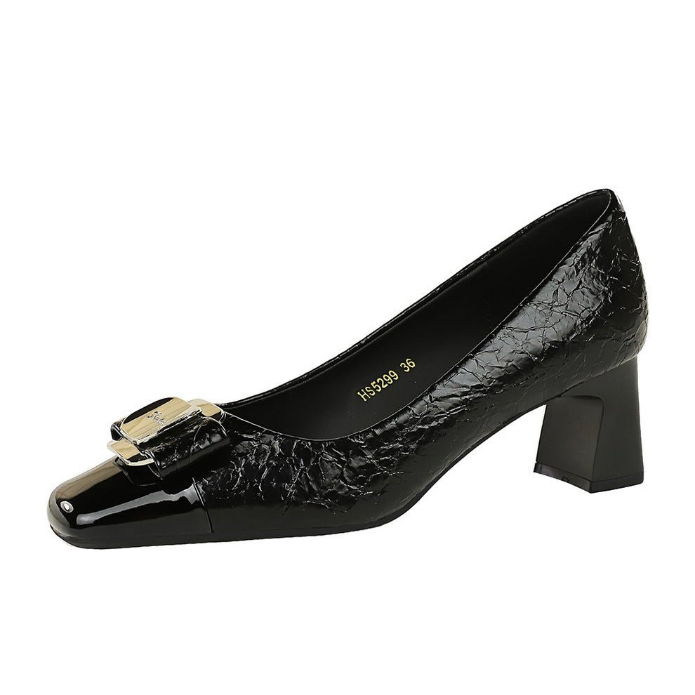 BIGTREE SHOES 5299-k91 European and American Style Fashion Business Ol Commuter Women’s Shoes Color Matching Square Toe Low-Cut Metal Buckle Bow Pumps