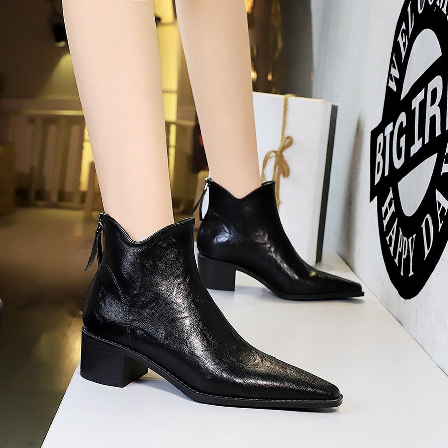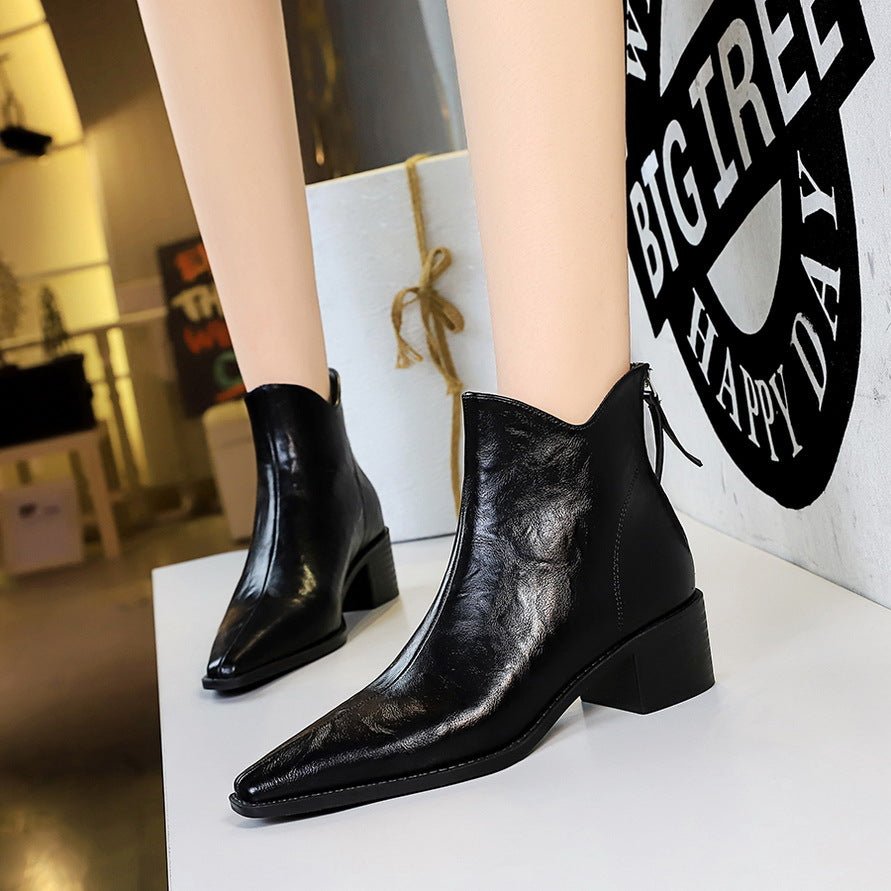 Bigtree Shoes 578-9 European and American Style Retro Hand Grip Pattern Female Boots Thick Heel Mid Heel Pointed-Toe Hollowed Slimming Knight Boots Ankle Boots