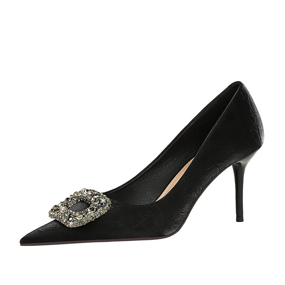 Bigtree Shoes 7239-Ak83 European and American Style Fashionable Banquet Women’s Shoes Stiletto High Heel Shallow Mouth Pointed Rhinestone Metal Buckle Single-Layer Shoes for Women