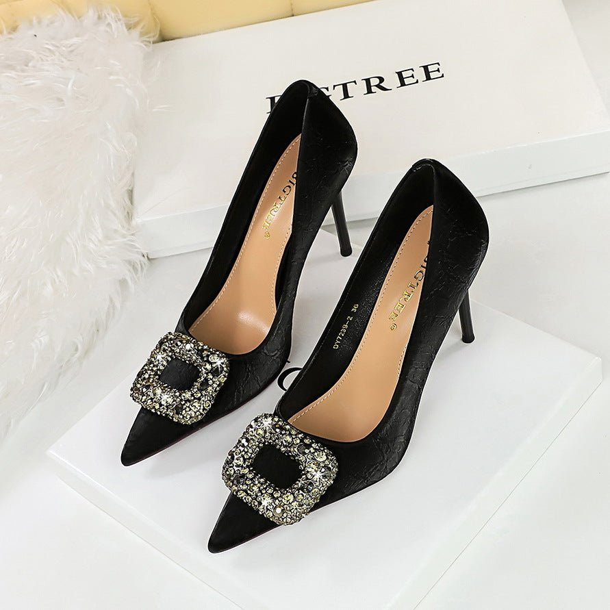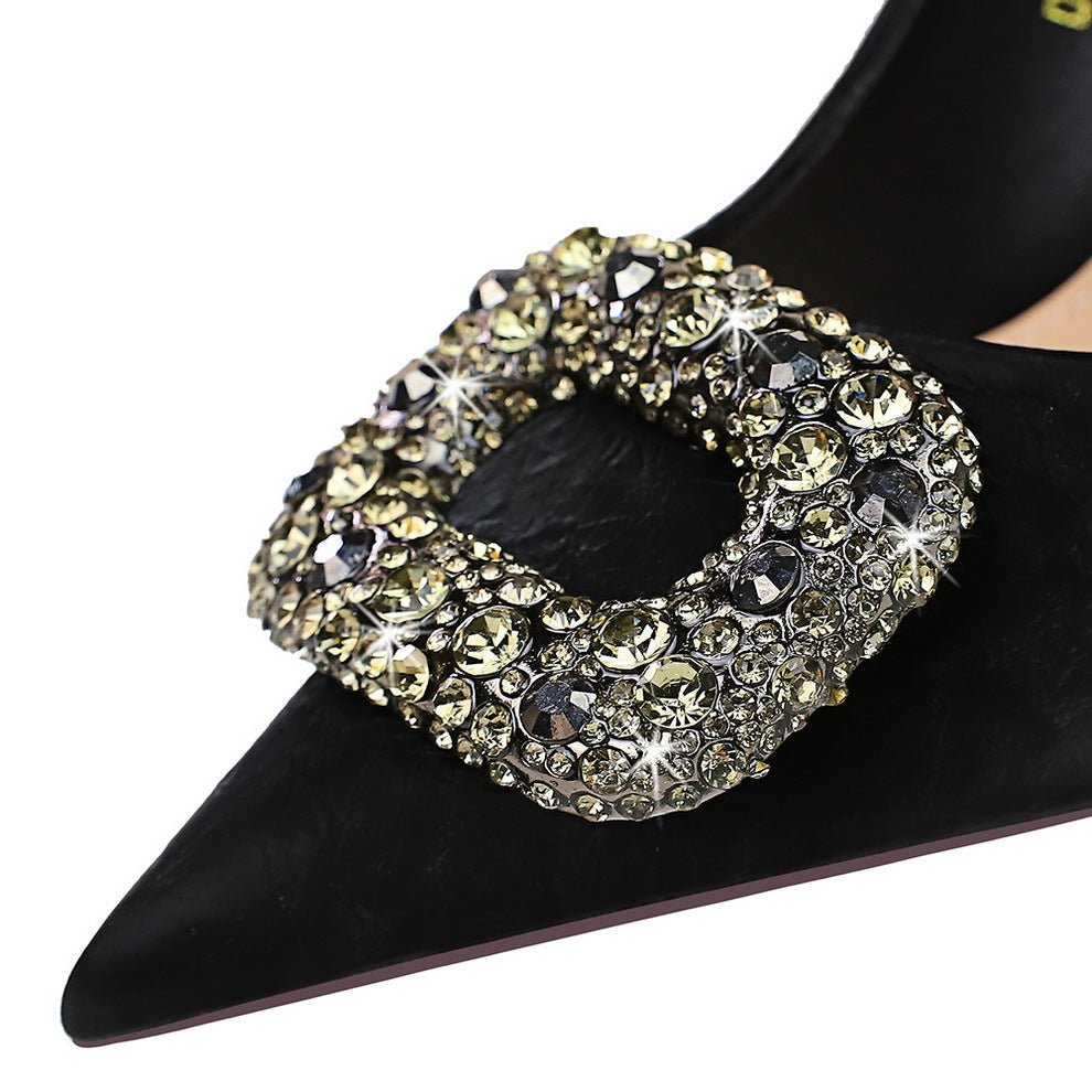 Bigtree Shoes 7239-K83 European and American Style Banquet High Heels Stiletto Low-Cut Pointed-Toe Super High Heel Women’s Shoes Metal Rhinestone Buckle Pumps