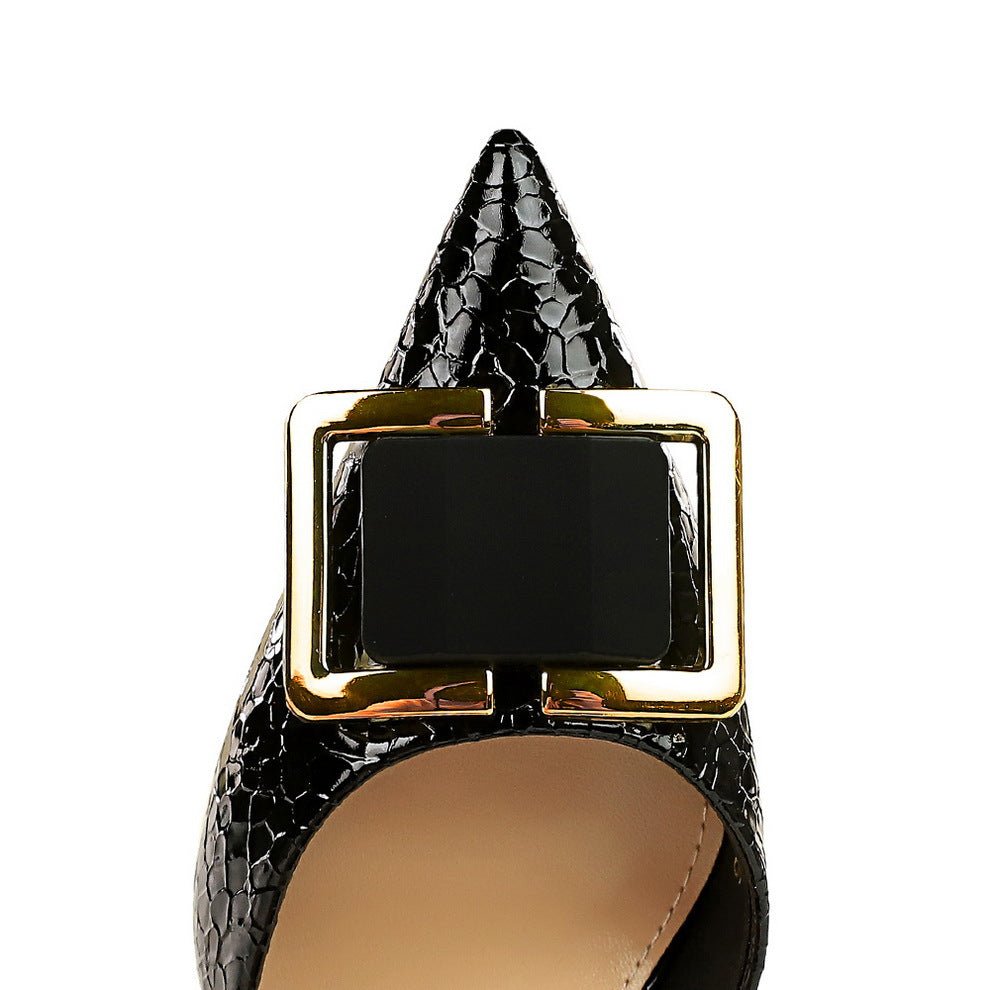 BIGTREE SHOES 8323-K57 European and American Style Banquet Sping Sandal Women’s Shoes High Heel Low-Cut Pointed Toe Metal Buckle Hollow-out Strap Sandals