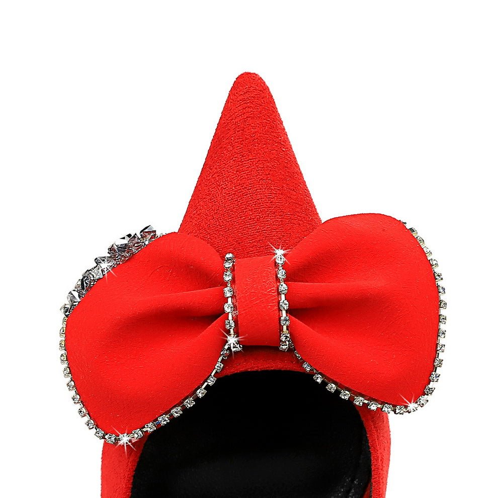 BIGTREE SHOES 9511-h31 Light Luxury Banquet High Heels Stiletto Suede Shallow Mouth Pointed Toe Rhinestone Bow Super High Heel Shoes Women