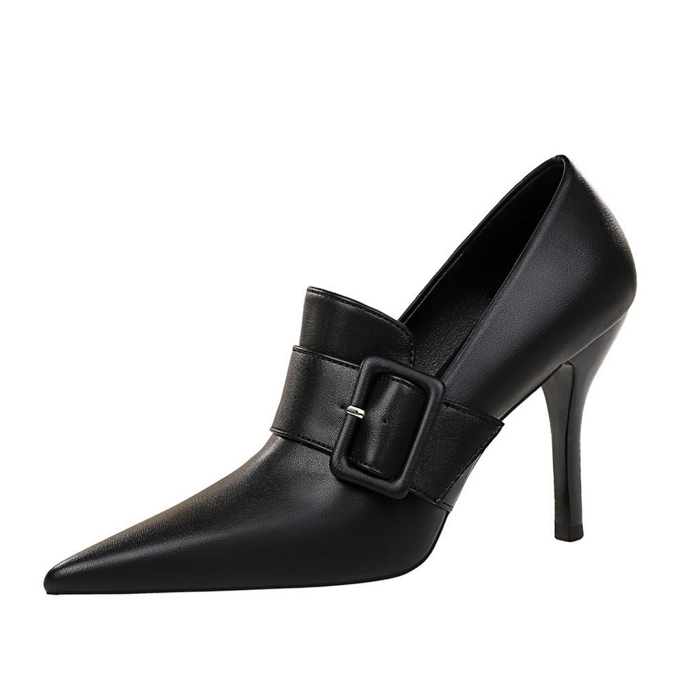 BIGTREE SHOES 958-2 European and American High Heels Women’s Shoes Wine Glass Heel Super High Heel Pointed Belt Buckle Decoration Deep Mouth Pumps High-Cut Shoes