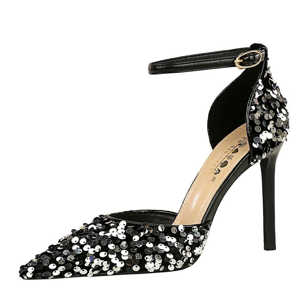 Popular Elements: European and American Style Fashion Banquet Hollow Hollow Word with Shining Sequins Super High Heel High Heels