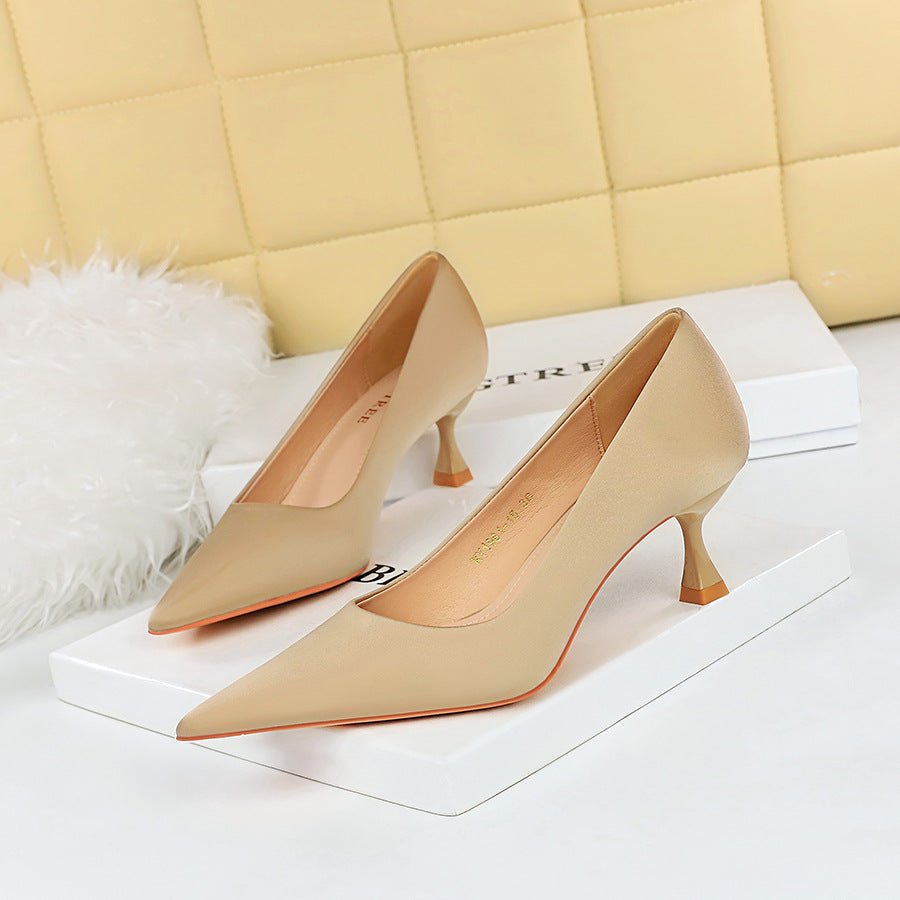 BIGTREE Spring and Autumn Fashion-6 Korean Style All-Matching High Heels Simple High Heel Low-Cut Wine Cup Heel Pointed Toe Satin Pumps Women
