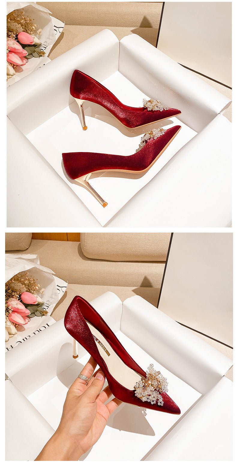 Runnig heels Runnig heels 818-10 Pointed High Heels Women’s Stiletto Heel Red Wedding Shoes Bridal Shoes 32-Size 43