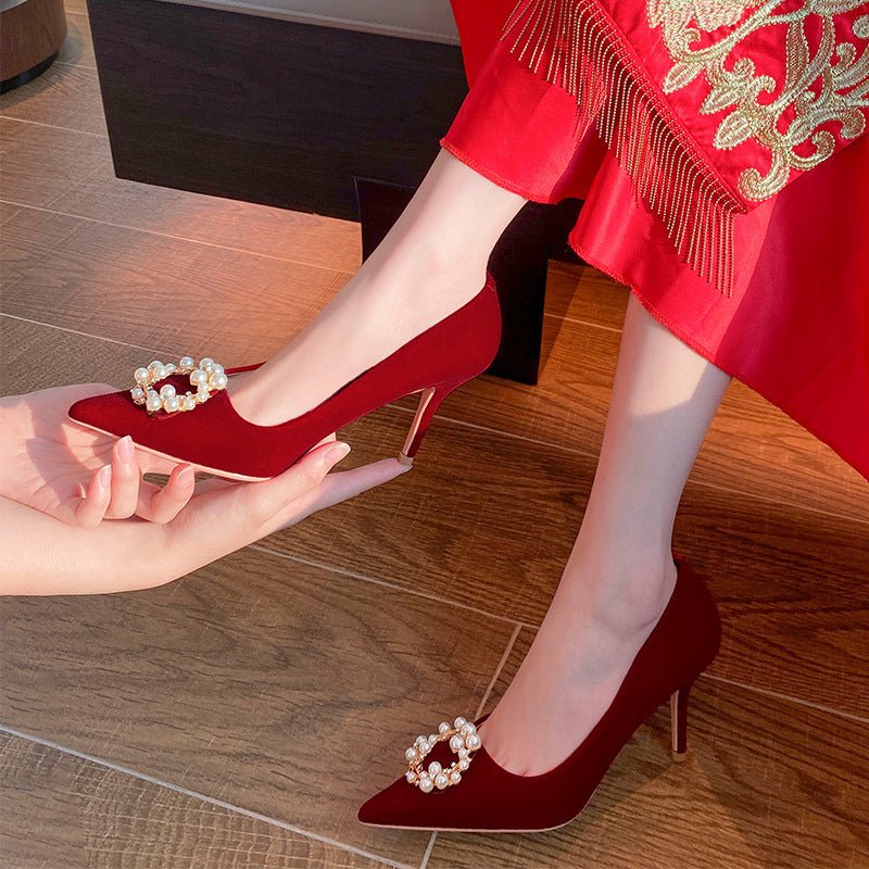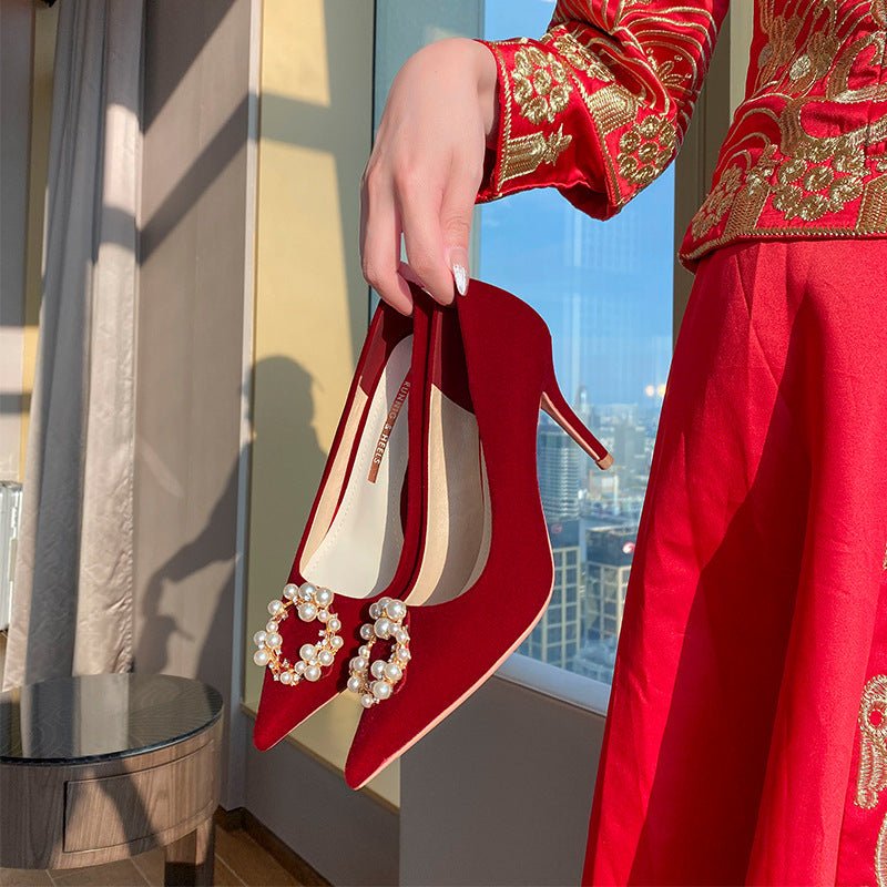 Runnig heels Runnig heels 878-23 Wedding Shoes Wedding Dress Red High Heels Women New Single Layer Shoes
