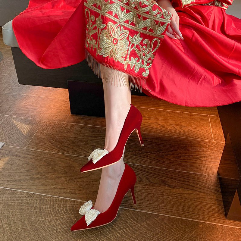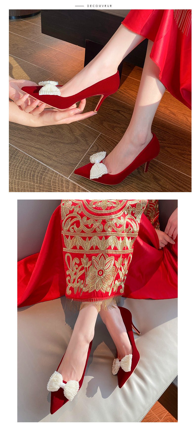 Runnig heels Runnig heels 878-43 Wedding Shoes Bridal Shoes Wedding Dress Red High Heels Women’s Shoes Large and Small Size