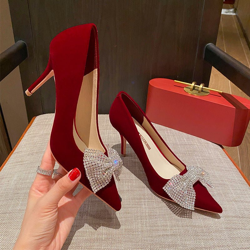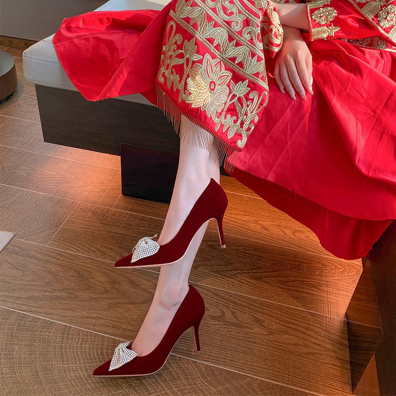 Runnig heels Runnig heels 878-48 Wedding Shoes Bridal Shoes Xiuhe Wedding Dress Two-Way Red High Heels New Single Layer Shoes Large and Small Size